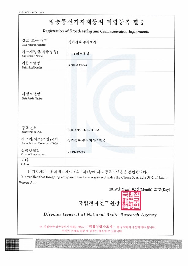 KCÀÎÁõ¹øÈ£ : R-R-sgE-RGB-2CH